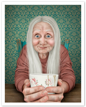 "Morraskaffen kjærringa" er et koselig bilde for folk som elsker kaffe.